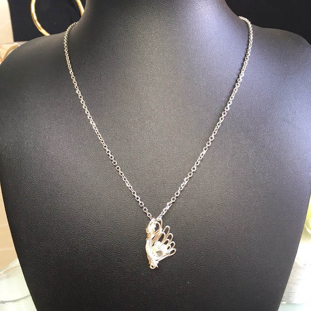 サージカルステンレスで巻くのは今の私の技術だと無理そうだったので、丸線のアーティスティックワイヤーでチャレンジしてみましたが、石を留めるだけで2、3回やり直ししました。爆